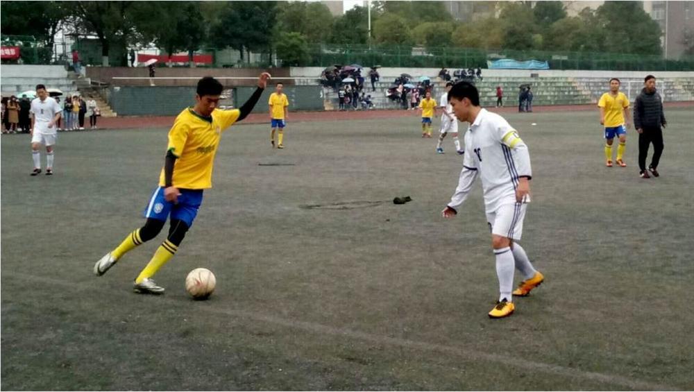 12时30分,随着裁判一声哨响,比赛正式开始。上半场伊始,双方球员迅速融入比赛,熟练的脚法,巧妙的传球及霸道的射门令场外观众欢呼呐喊。材化学院凭借巧妙的攻略,熟练的脚法,默契的配合,多次突破对方的防线,率先进入一球,极大的鼓舞了队员的势气,场内一片欢呼喝彩声。中场休息后,材化学院进行人员调配及战术调整,比赛进入下半场,起初外语学院的加强防守策略效果显著,一度使材化学院难以攻破防线,但队员坚持不懈,趁机迅速突入射门区域,灵活躲过对手拦截,一记侧弧线球令守门员难以防备,成功进球。最终以3:2取得本场胜利。至此,我院获得校足球比赛小组赛三连胜。