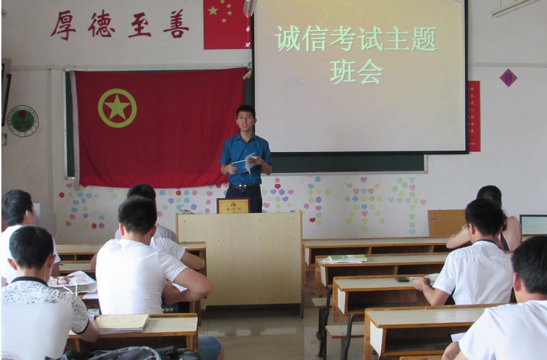 首先,班长周志迎宣读了期末考试细则和考试舞弊行为处罚规,并希望同学们对考试引起重视,做到诚信做人、诚信考试。之后,班主任刘芳老师再次强调诚信考试的重要性,并希望同学们在后面的时间中抓紧复习,坚决杜绝考试舞弊行为,预祝大家在期末考试中取得优异成绩。