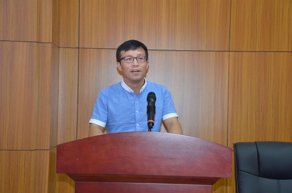 晏根平博士代表我院教师发言,他从一个学者的角度对新生提出了建议并寄予了期望。2013级无机非金属材料专业孙朝中同学、2015级环境专业张可欣同学分别作为老生、新生代表发言。