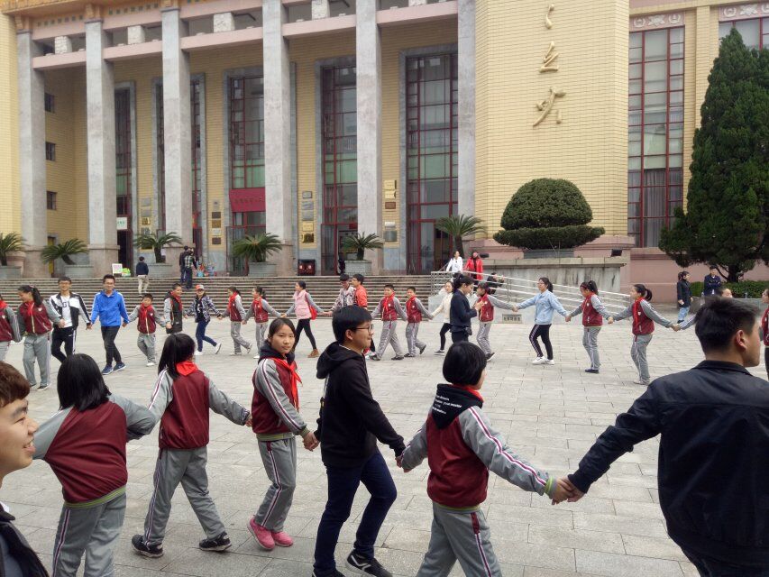 此外,志愿者们还协同安源纪念馆内工作人员为当地小学的留守儿童送去了关心和祝福。志愿者们遵循一对一的分配原则大手牵小手,同孩子们一起辩识馆外树木;清扫纪念馆,了解建馆的红色背景,共同体会革命先驱的艰辛不易。于此同时,志愿者们还陪同孩子们做游戏,给他们表演歌舞,欢声笑语弥漫着整个苍翠美丽的牛行岭。活动结束时,大手小手依依不舍,爱的拥抱温馨非常。