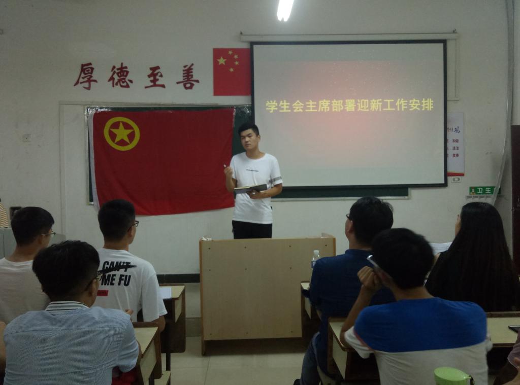 本次大会诚邀我院党总支副书记向芸老师、团总支书记郑照强老师及2018级两名新生辅导员欧阳甜甜老师和刘帅老师出席并讲话,大三、大四的执委一同参会。会上,郑照强老师指出,迎新工作是新生对我们学校的第一印象,同时也是展示我院学生风采的重要环节,希望参与迎新工作的老师、同学提高认知,认真做到“负责、阳光、担当”。接着团总支学生分会主席李金涛同学对迎新活动流程进行说明。新生辅导员代表欧阳甜甜老师就此次迎新活动的细节进行了强调补充。