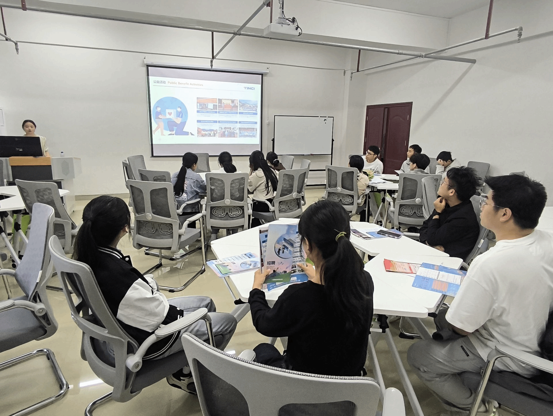 招聘会伊始,九江天赐高新材料有限公司廖经理通过一段视频,详细介绍了公司的发展历程、核心业务及企业文化。招聘会中,廖经理重点解读了新能源材料行业的未来趋势,并针对材料、化学、环境等专业学生的职业发展方向提出建议,强调“专业能力+实践创新”的双重竞争力。随后,廖经理展示了新能源材料领域的技术突破与应用场景,并对公司未来规划进行了阐述。