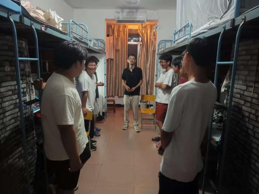 走访过程中,何老师与新生们进行了亲切友好的交流。家乡是哪里?学校的饮食还习惯吗?来到新环境有没有什么困难?一句句贴心的问候,迅速拉近了师生间的距离。何老师还查看了宿舍的住宿环境、卫生状况等各项生活设施,关切地询问同学们在生活上是否遇到什么困难,并认真听取了同学们对学校住宿条件的建议。