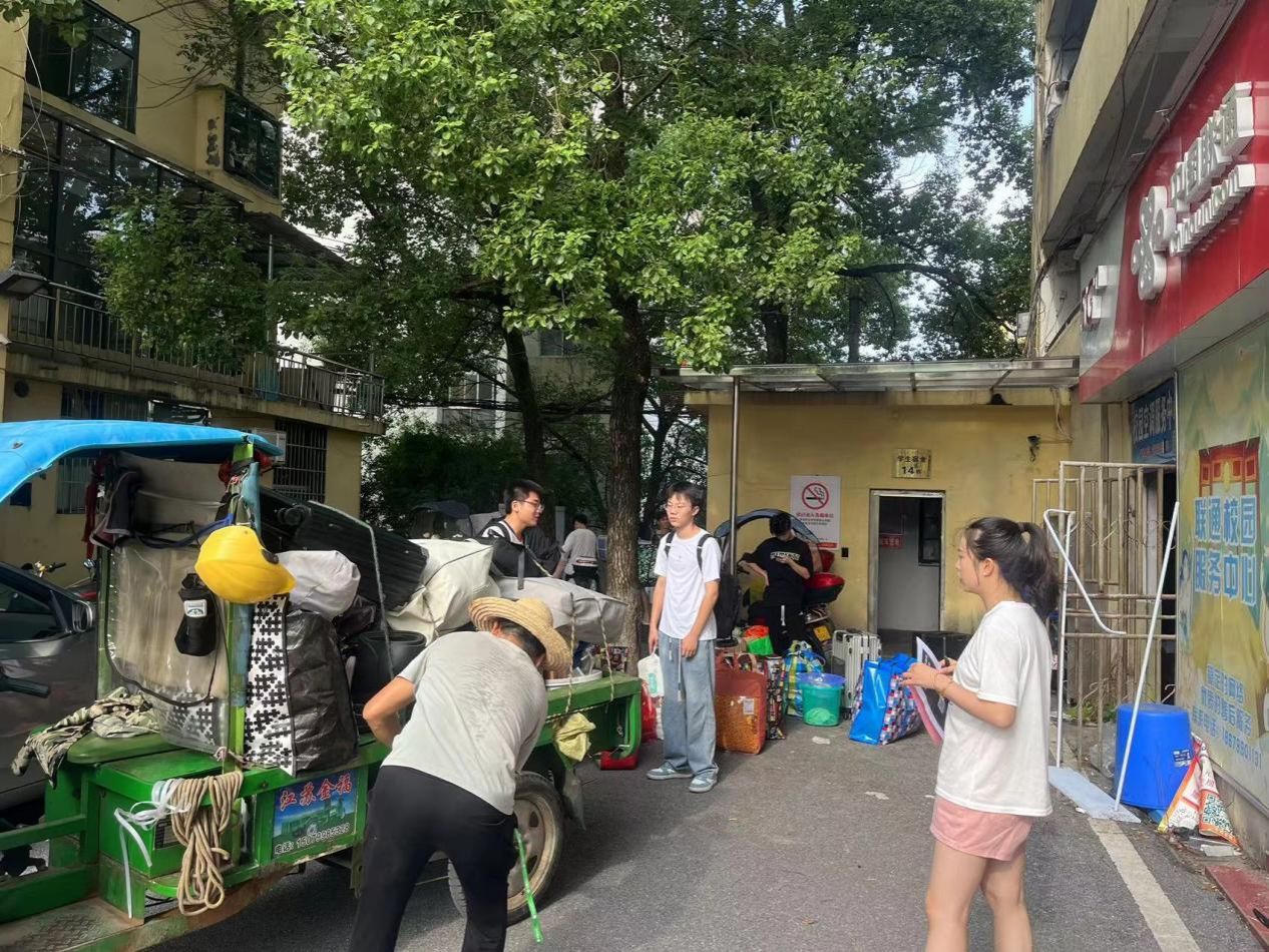烈日下,他们肩扛手提穿梭楼宇间,将沉甸甸的行李箱化作轻快的音符;台阶前,他们默契配合传递纸箱,让杂乱的物品在整理中井然有序。从分类打包到装车运输,老师用实际行动诠释"全程守护"——既当搬运工,又做心理师,用幽默化解离愁,用耐心解答困惑。