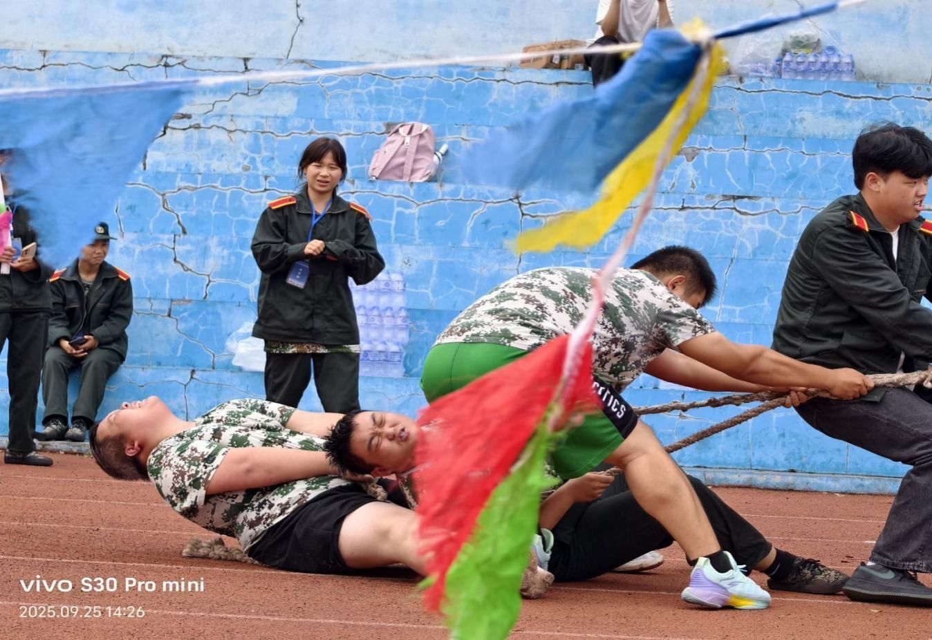 拔河赛场,是力量与意志的交锋。新生们紧握长绳,身体后倾、齐心协力,在口号声中咬紧牙关,为连队荣誉全力拼搏,摔倒又迅速站起的身影,定格成青春奋斗的剪影。趣味竞技里,围绕水瓶等道具的创意挑战,让大家在欢笑中试炼应变与协作,展现出青春的活力与创意。