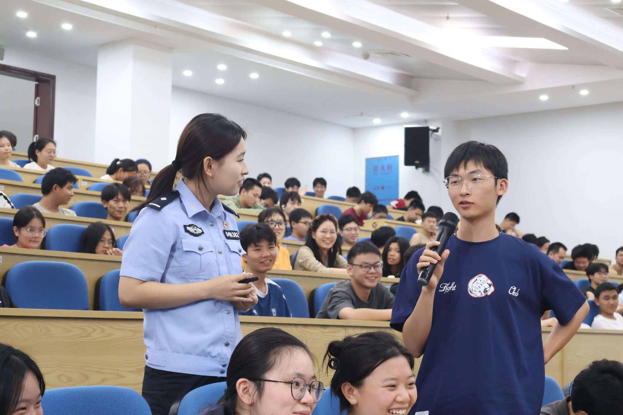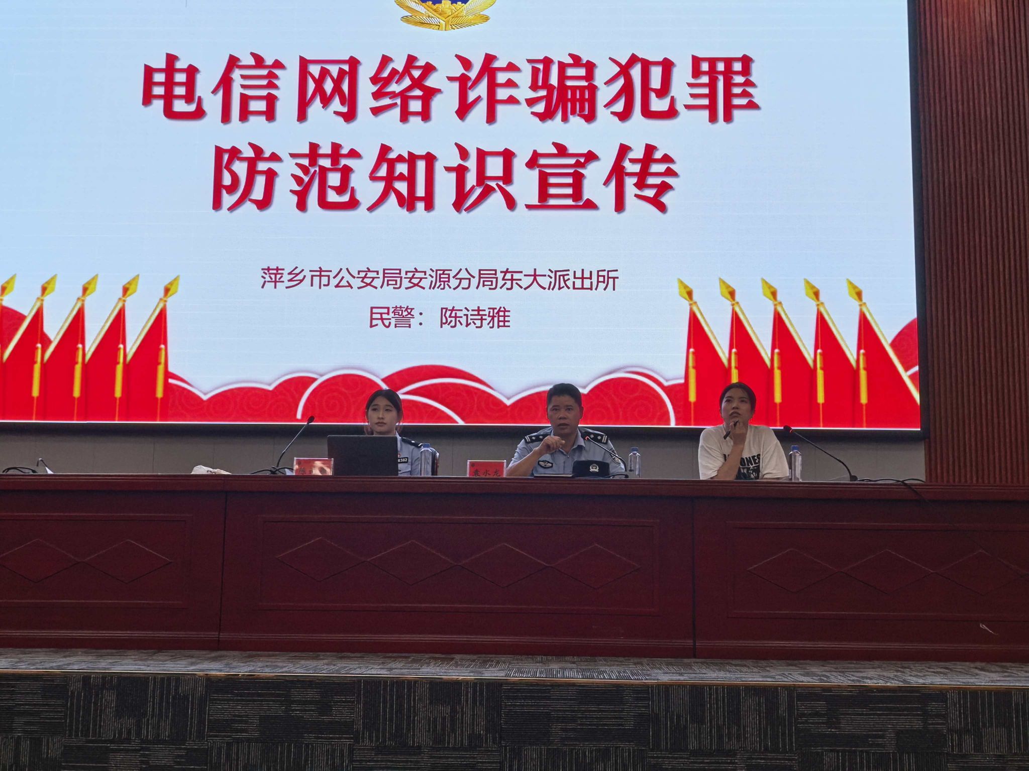 2025年10月16日,由萍乡学院材料与化学工程学院联合萍乡市公安局安源东大派出所开展的电信网络诈骗防范宣传课在天泉楼报告厅成功举办。萍乡市公安局安源分局东大派出所所长袁水龙、材料与化学工程学院辅导员李鸣出席此次活动并参与讲话,民警陈诗雅担任此次主讲人,为材料与化学工程学院学生提升反诈防骗意识,为师生们送上“反诈安全大礼包”。